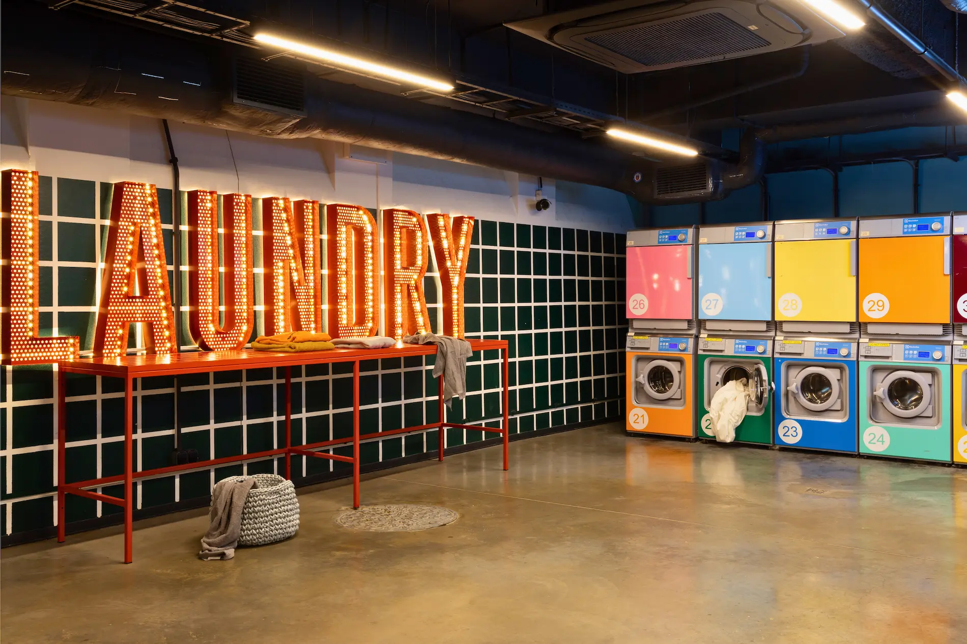 Washing machines, dryers, ironing station