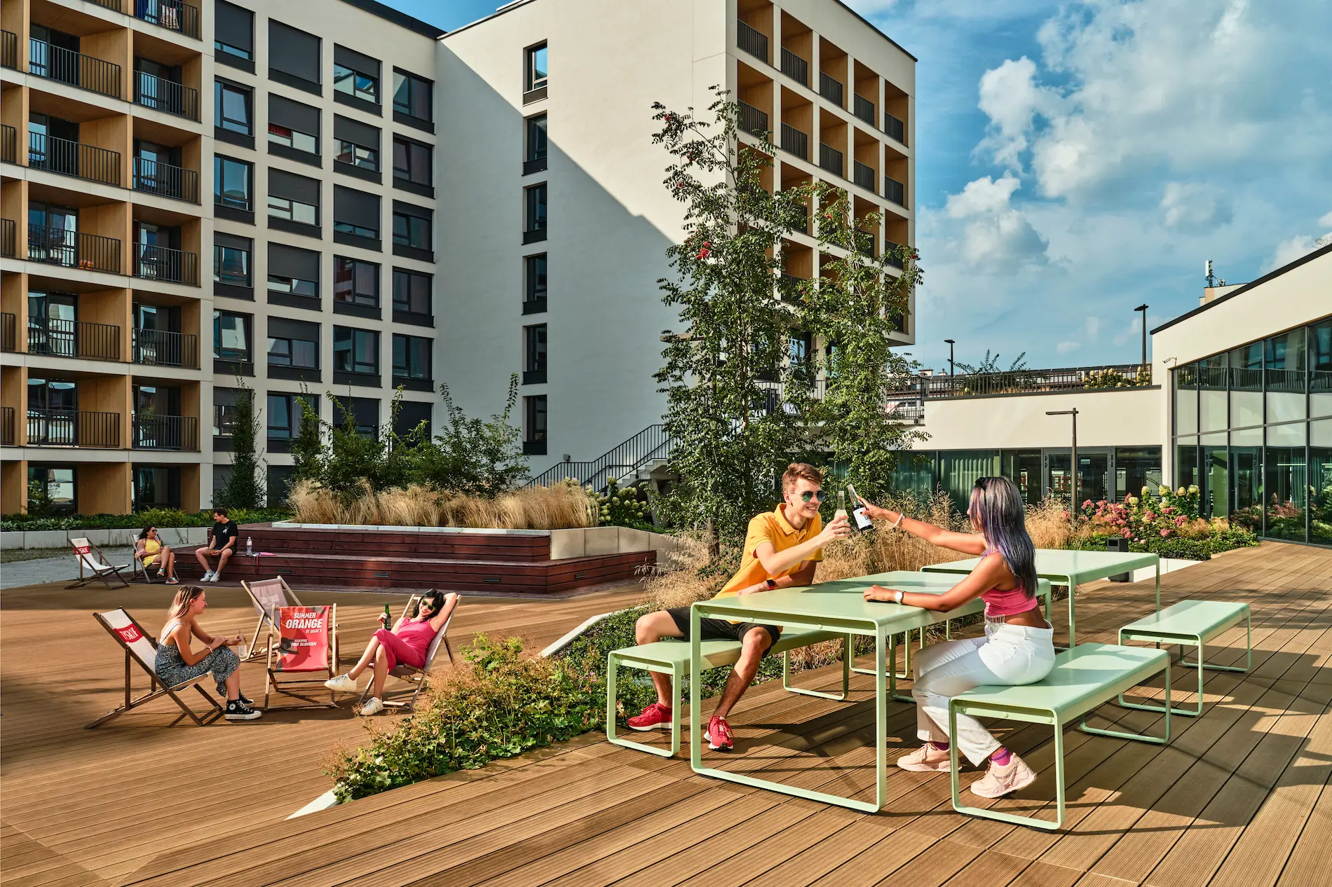Shared kitchens, chill out areas and outdoor spaces